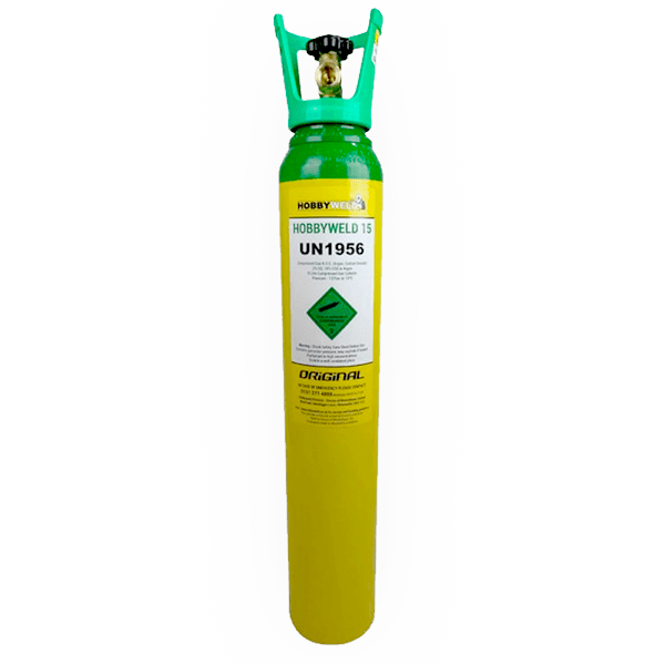 Hobbyweld 15 is a specific blend of 83% Argon, 15% Carbon Dioxide and 2% Oxygen. Great for MIG welding of steel between 5mm and 18mm thick, The wide operating range makes Hobbyweld 15 a good all round choice for general fabrication. Easy to use with low distortion, porosity and oxidation potential, providing a sound weld at minimum cost. Overall a great choice for heavier duty MIG welding work.