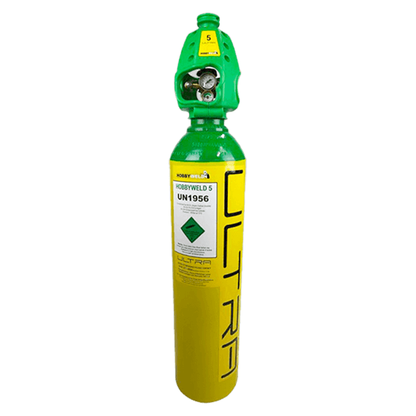 Hobbyweld 5 Ultra is a 20 litre welding gas cylinder with a specific blend of 93% argon, 5% carbon dioxide and 2% oxygen.